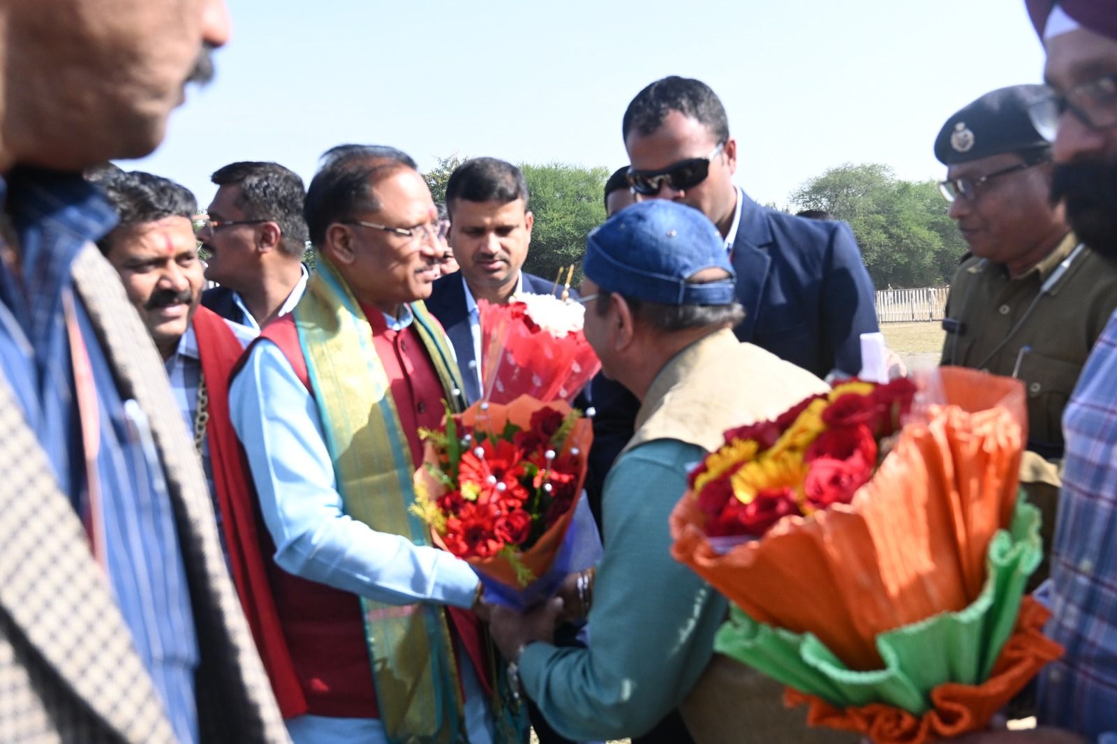 मुख्यमंत्री विष्णु देव साय का हेलीपैड पर जोशीला स्वागत