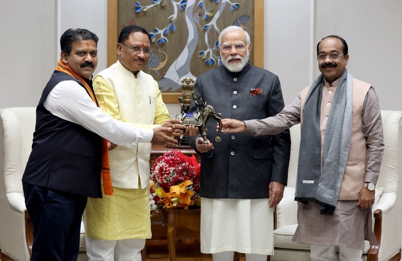 रायपुर। छत्तीसगढ़ के मुख्यमंत्री विष्णु देव साय ने शनिवार को नई दिल्ली में राष्ट्रपति श्रीमती द्रौपदी मुर्मु, उपराष्ट्रपति जगदीप धनखड़, प्रधानमंत्री नरेन्द्र मोदी, केन्द्रीय गृह मंत्री अमित शाह, वित्त मंत्री श्रीमती निर्मला सीतारमण एवं केन्द्रीय रेल मंत्री अश्विनी वैष्णव से सौजन्य मुलाकात की। इस दौरान राज्य के उपमुख्यमंत्री अरुण साव और विजय शर्मा भी उनके साथ थे।