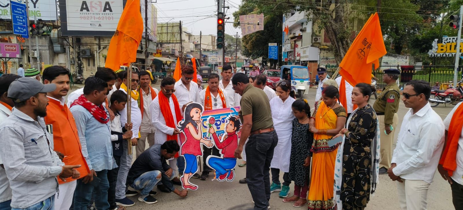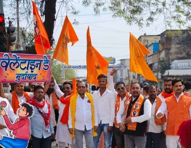 चौक-चौराहों में जलाएं गए वेलेंटाइन डे कार्ड, किया गया प्रदर्शन
