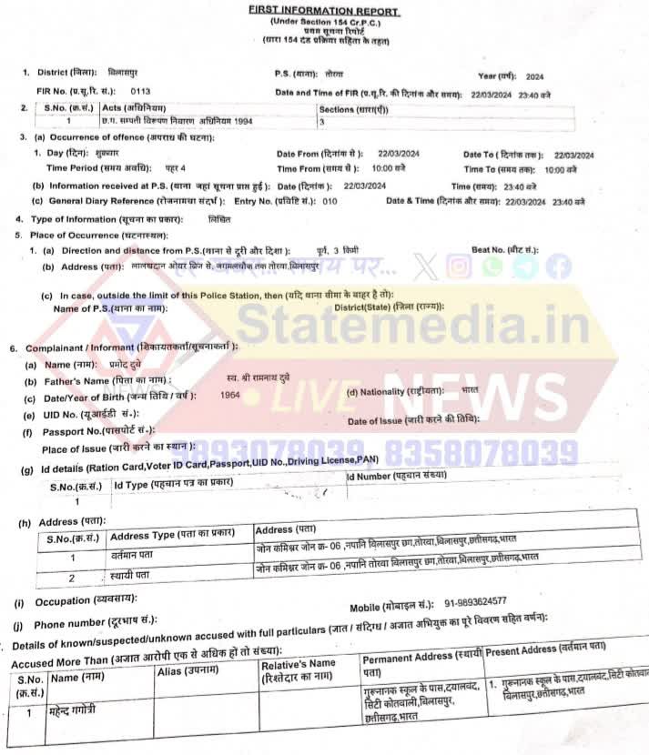 बिलासपुर। आचार संहिता के उल्लंघन के मामले में कांग्रेस के प्रदेश महासचिव महेंद्र गंगोत्री के खिलाफ एफआईआर की गई है। सड़क के डिवाइडर में लगे पोल में उक्त नेता द्वारा कांग्रेस प्रदेश प्रभारी सचिन पायलट, प्रदेश कांग्रेस अध्यक्ष दीपक बैज समेत अन्य नेताओं की तस्वीरों के साथ कटआउट पोस्टर लगवाया गया था, जिसे नगर निगम द्वारा हटाया गया। लोकसभा चुनाव के मद्देनजर लागू आदर्श आचार संहिता के उल्लंघन पर जिला निर्वाचन अधिकारी के निर्देश पर नगर निगम द्वारा तोरवा थाने में कांग्रेस के प्रदेश महासचिव महेंद्र गंगोत्री के विरूद्ध आवेदन पर छ.ग. संपत्ति विरूपण निवारण अधिनियम की धारा 3 के तहत मामला दर्ज किया गया है।