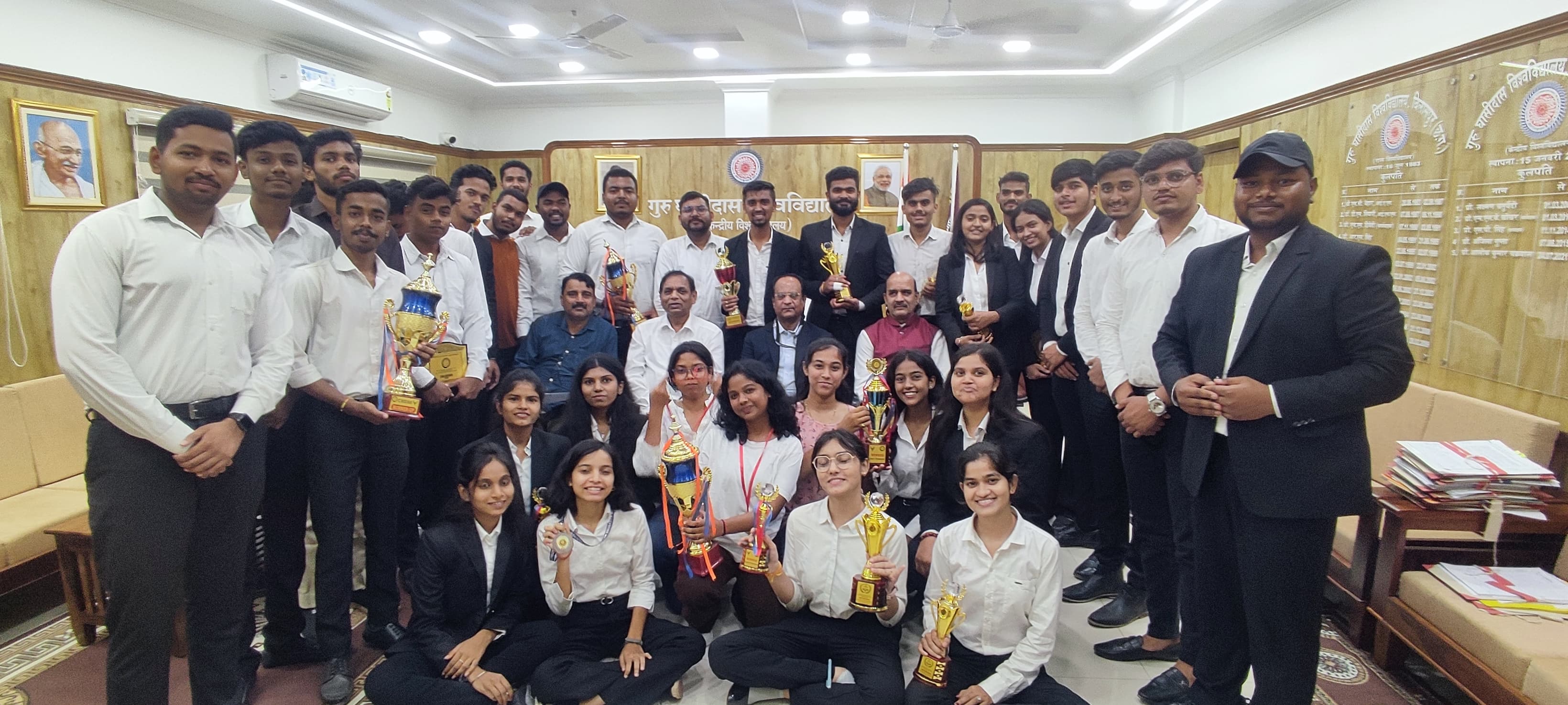 हिदायतुल्लाह नेशनल ला यूनिवर्सिटी में हुए इस आयोजन में बिलासपुर केंद्रीय विश्वविद्यालय गुरु घासी दास के करीब एक सौ सत्तर छात्र-छात्राएं भी शामिल हुए। तीन दिन तक चले इस आयोजन में विभिन्न प्रकार के कार्यक्रम कराए गए। इस आयोजन में छात्र और छात्राओं ने बढ़चढ़कर में इसमें हिस्सा लिया।27 अक्तूबर से 29 अक्तूबर तक चले इस आयोजन में केंद्रीय विश्व विद्यालय गुरु घासी दास के छात्र- छात्राओं ने अपना जौहर दिखाते हुए लगभग सभी प्रतियोगिता में अपना परचम लहराया। कार्यक्रम के समापन अवसर पर हिदायतुल्लाह नेशनल ला यूनिवर्सिटी कुलपति वीसी विवेकानंद कार्यक्रम में मुख्य अतिथि के रुप में शामिल हुए।और इनके द्वारा प्रतियोगिता में जीतने वाले सभी प्रतियोगियों को पुरस्कार दिया गया। इनाम पाने वालों में गुरु घासीदास केंद्रीय विश्वविद्यालय के छात्र-छात्राओं जो इनाम पाए वह युवा संसद में आनंद बजाज, आस्था पटेल और अर्पित उपाध्याय। हितधारको की बैठक जैसे कार्यक्रम में निकिता दुबे, निधि तिवारी। लोक सभा कार्यक्रम में प्रशस्ति शुक्ला। संयुक्त राष्ट्र ग्लोबल कामपेक्ट में प्रखर तिवारी। डांस में निकिता दुबे, नित्या खत्री। ग्रुप डांस में अभिनर्तन संस्था जीजीयू। पंजा लड़ाई में यश चंद्रकार। शतरंज हर्ष यादव, जयेश साहू। रस्सा कसी में अक्षत उसराठे, अनुराग दुबे, हरिओम पांडे के नेतृत्व में द्वितीय स्थान प्राप्त किया। दौड़ में हेमंत चंद्रसेन द्वितीय स्थान। रैप सॉन्ग में देवराज अहिरवार द्वितीय स्थान। युगल नृत्य में जिज्ञासा गुप्ता, कशिश गुप्ता।इनके अलावा ऐसे कई तरह की प्रतियोगिता हुई, जिसमे गुरु घासीदास केंद्रीय विद्यालय के छात्र और छात्राओं ने बाजी मारी।लगभग डेढ़ लाख की इनाम राशि जीतकर अपने विश्वविद्यालय का नाम रोशन किया। वही सर्वोत्तम प्रतिनिधिमंडल के अवॉर्ड से गुरुघासीदास विश्व विद्यालय को सम्मानित किया गया। साथ ही साथ पच्चीस हजार की इनाम राशि अलग से विश्व विद्यालय को मिली।