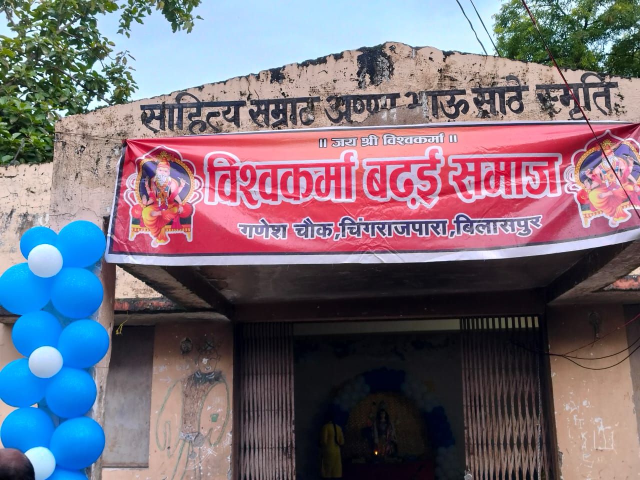 बिलासपुर के चिंगराजपारा में विश्वकर्मा (बढ़ई) कल्याण समिति द्वारा भगवान विश्वकर्मा जी की प्रतिमा स्थापित की गई। जहा सभी पदाधिकारियों ने भगवान विश्वकर्मा की पूजा अर्चना कर प्रसाद वितरण किया। इस अवसर पर समिति के सदस्य गीता विश्वकर्मा, सदन विश्वकर्मा, जग्गू विश्वकर्मा, नरोत्तम विश्वकर्मा, लव विश्वकर्मा, अश्वनी विश्वकर्मा, पप्पू विश्वकर्मा, समीर (सोनू) विश्वकर्मा, श्रवण विश्वकर्मा समेत समाज के अनेक सदस्य और आमजन उपस्थित रहे। इस दौरान श्रद्धालुओं ने भगवान विश्वकर्मा के प्रति अपनी भक्ति और श्रद्धा व्यक्त की। समाज के लोगों ने इस अवसर पर एकता और समृद्धि की कामना की और भगवान से आशीर्वाद प्राप्त किया।