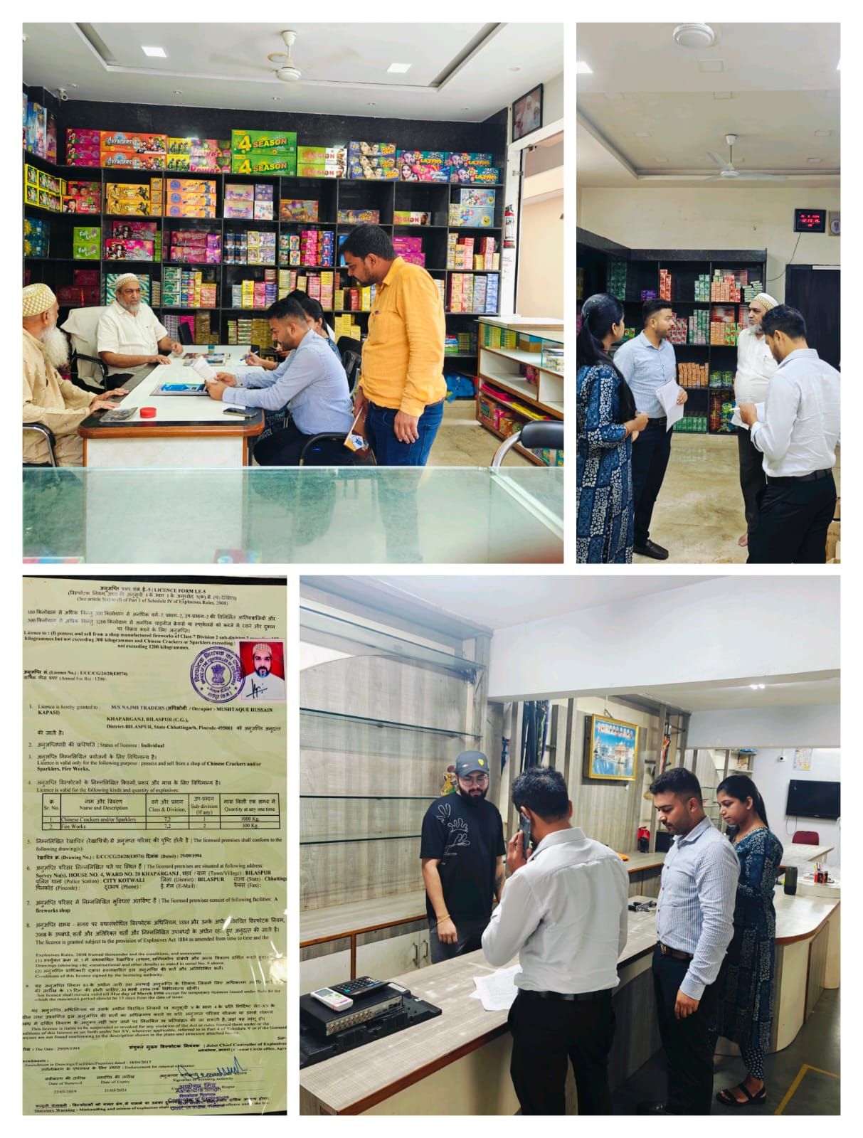 यश विश्वकर्मा @ बिलासपुर। 25 सितंबर को तोरवा स्थित जय गणेश ट्रेडर्स की पटाखा दुकान में हुई भीषण आगजनी की घटना ने शहर में हड़कंप मचा दिया। घटना के बाद प्रशासन ने सुरक्षा के मद्देनजर सभी पटाखा दुकानों की जांच के आदेश जारी किए। कलेक्टर के निर्देशानुसार, एसडीएम बिलासपुर के मार्गदर्शन में तहसीलदार और अति. नायब तहसीलदार की टीम ने खपरगंज और जूनी लाइन स्थित पटाखा दुकानों का निरीक्षण किया।