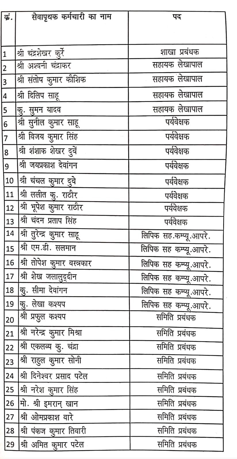 यश बिलासपुर @ बिलासपुर। जिला सहकारी केंद्रीय बैंक बिलासपुर में हुई स्टाफ कमेटी की बैठक में दूषित प्रक्रिया से भर्ती हुए 29 कर्मचारियों को एक बार फिर सेवा से बर्खास्त कर दिया गया है। इन कर्मचारियों में 1 शाखा प्रबंधक, 4 सहायक लेखापाल, 8 पर्यवेक्षक, 6 लिपिक सह कंप्यूटर ऑपरेटर और 10 समिति प्रबंधक शामिल हैं।