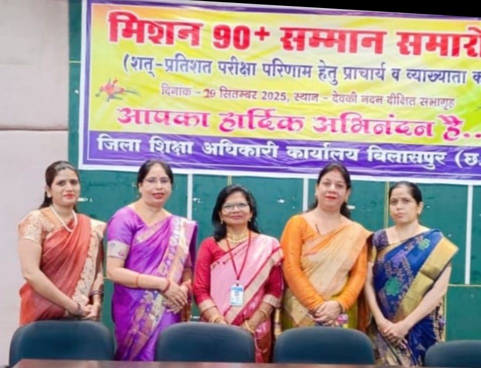 यश विश्वकर्मा @ बिलासपुर। जिले में चल रहे मिशन 90 प्लस के तहत आयोजित जिला स्तरीय शिक्षक सम्मान समारोह में शत प्रतिशत परीक्षा परिणाम देने वाले व्याख्याताओं एवं विद्यालयों के प्राचार्यों को कलेक्टर संजय अग्रवाल ने सम्मानित किया। माता सरस्वती के चित्र पर दीप प्रज्वलन कर कार्यक्रम की शुरुआत हुई। बच्चों ने सरस्वती वंदना और स्वागत गीत प्रस्तुत कर माहौल को भावपूर्ण बना दिया।